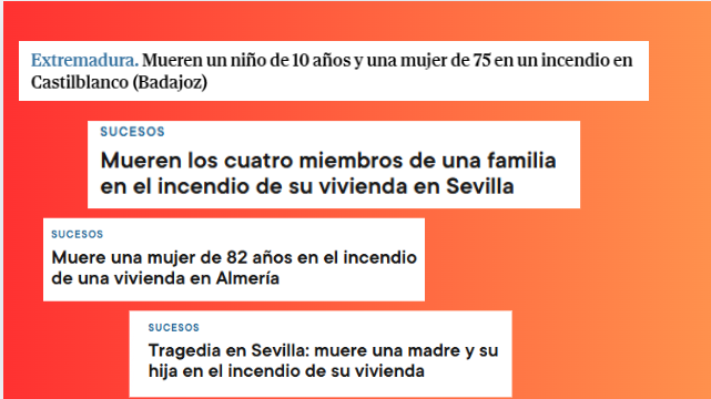 Compro lotería con la esperanza de que me toque a sabiendas de la gran cantidad de personas que juegan y únicamente una minoría obtendrá premio . El porcentaje de que yo sea uno de los afortunados es tan bajo, que casi es más fácil que me alcance un francotirador disparando al azar si se diera el caso. Pero con muchas mas posibilidades de sufrir un siniestro no hago nada al respecto. Es decir, vivo en un edifico en altura y por debajo hay viviendo varias familias por planta Todos cocinan y enchufan cosas a la red eléctrica, fuman, tienen bombonas de gas o calderas o mas cosas cotidianas que un día puede desembocar en un accidente por diferentes causas. Pero aun así….. creo que es mas fácil que me toque la lotería a sufrir un percance. Seria conveniente replantearse las prioridades de cara a la seguridad de uno mismo y nuestro seres queridos.